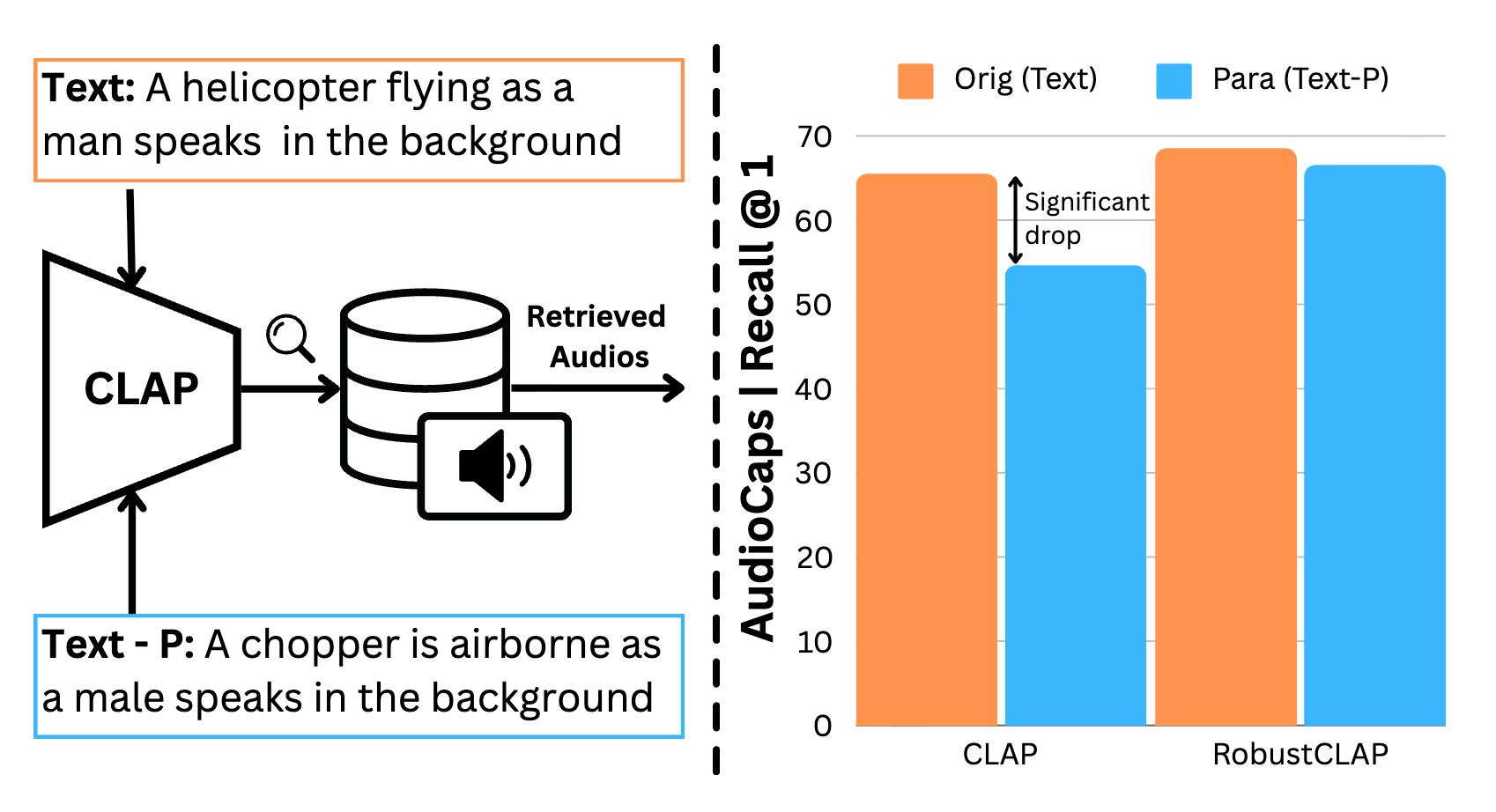Proposes RobustCLAP, a novel technique to improve audio-language representations that are robust to linguistic variations and paraphrases in text queries, improving text-to-audio retrieval performance by up to 13%.