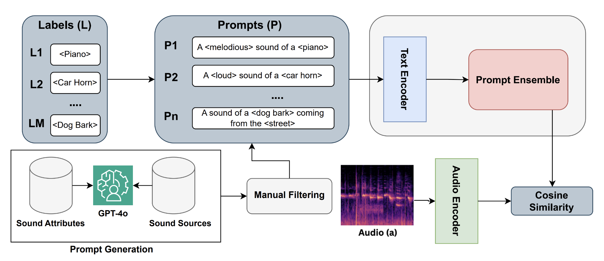 A novel task-specific prompt ensemble method that improves zero-shot audio classification performance by 16%.