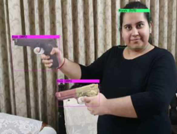A real-time system that detects guns and knives from CCTV footage using YOLOv4, achieving 90.35% accuracy and instantly notifying authorities via SMS and WhatsApp to prevent crimes.